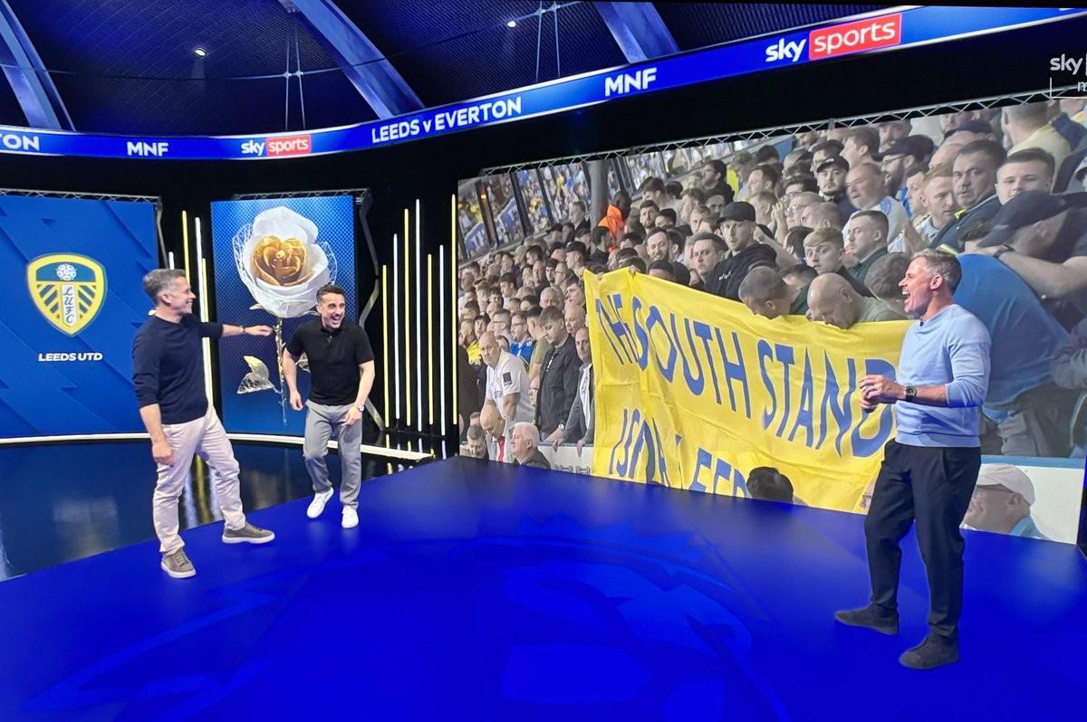 在天空体育本赛季英超首期“周一足球夜”节目中,曼联传奇、评论员加里-内维尔被拍到说“利兹联球迷是他最不想靠近的一群人”,他以为当时没在直播。